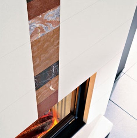 Вставка из горизонтально уложенного мрамора для облицовки Dromond под топку Cristal 47 и облицовки Darwin под топку Tekno 1 (EdilKamin).