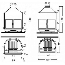 - Отопление: Естественная конвекция, лучистый обогрев и дополнительная вентиляция с искусственной тягой через систему Multifuoco System® или Multifuoco System Plus, воздуховодов, принудительная вентиляция комплект