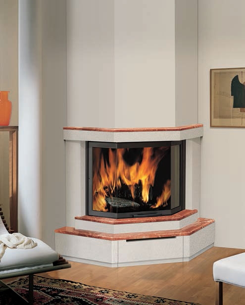Внимание! На фото угловой вариант исполнения облицовки под топку TEKNO 3 (EdilKamin)!